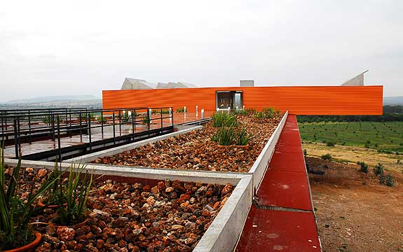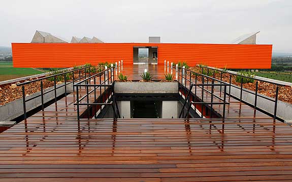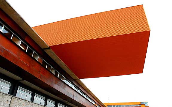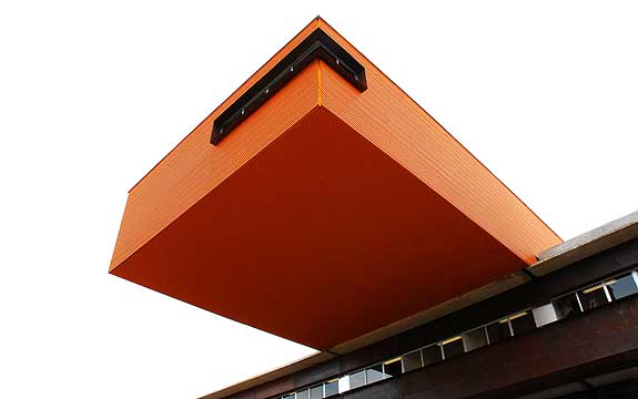 The juxtaposition of warm colors and materials can work together in an outdoor environment to make a bold statement.