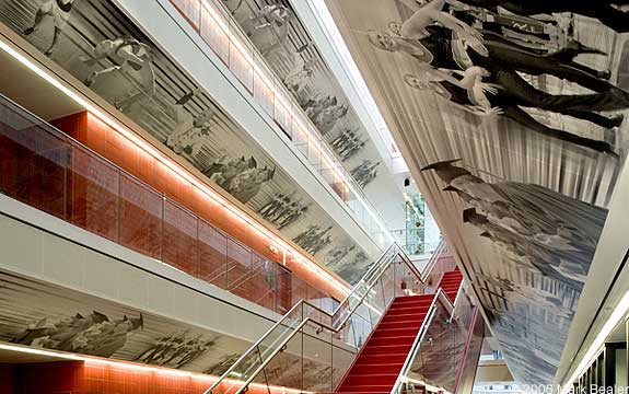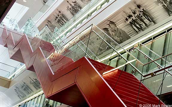 Because of pre-existing structures, the architects and designers had to design this space in a boomerang shape - a massive challenge resulting in a fantastic success.